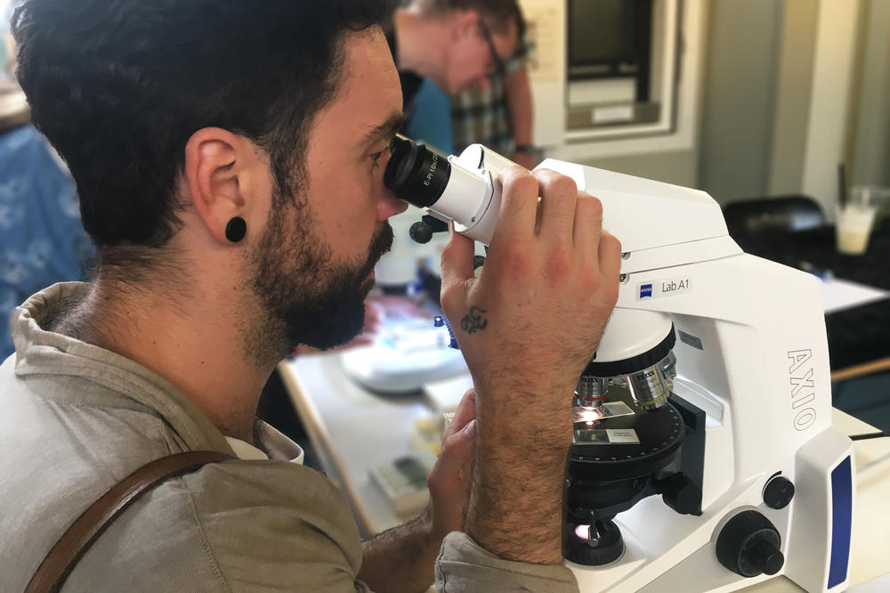 Der Mathematikprofessor führte 30 Sponsorinnen und Sponsoren von Stipendien für Studierende der Universität über den Campus. Kunsthistoriker Christian Freigang erläuterte der Gruppe die Geschichte baulicher Highlights; bei einem Besuch im Institut für Biochemie drehte sich alles um leuchtende Alltagsprodukte und Lebensmittel. Bananen beispielsweise sind durch den Chlorophyll-Abbau fluoreszierend. Möglicherweise nützt das Tieren, um zu erkennen, wann die Früchte reif sind. Für Menschen ist die blaue Färbung dagegen nur unter UV-Licht sichtbar.