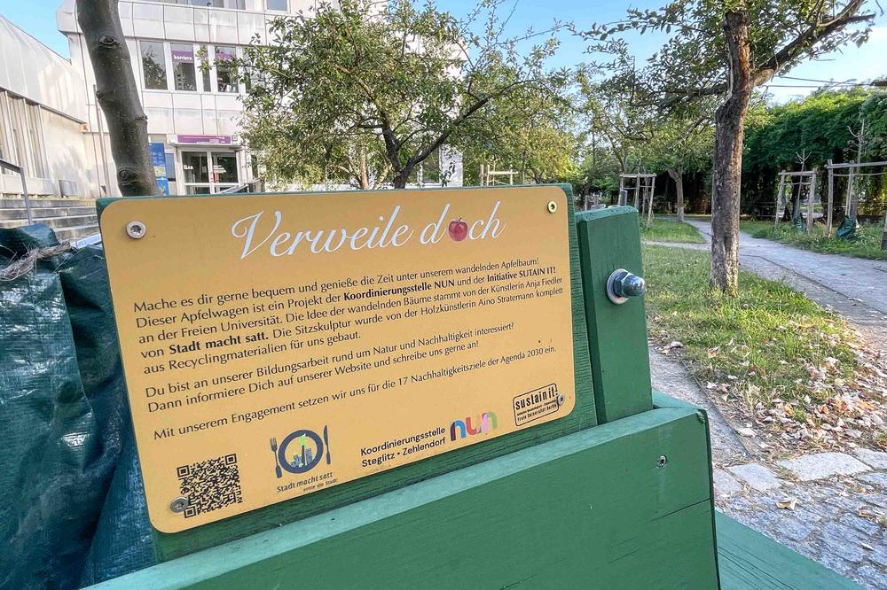 „Vom Seminarzentrum schauten wir oft auf diese Apfelwiese, die wir als Begegnungsort, Workshop-Raum oder für Kaffeepausen nutzen und dachten uns: Warum stellen wir die Apfelwiese nicht ins Zentrum eines praxisorientierten Forschungsseminars?“, sagte Karola Braun-Wanke, wissenschaftliche Koordinatorin der Nachhaltigkeitsinitiative Sustain it! vom Campus Zukunftsbildung der Freien Universität Berlin. Sie hat bereits etliche Nachhaltigkeitsprojekte mit Studierenden auf dem Campus umgesetzt – wie die beiden Gemeinschaftsgärten „Blätterlaube“ und „UniGardening“.