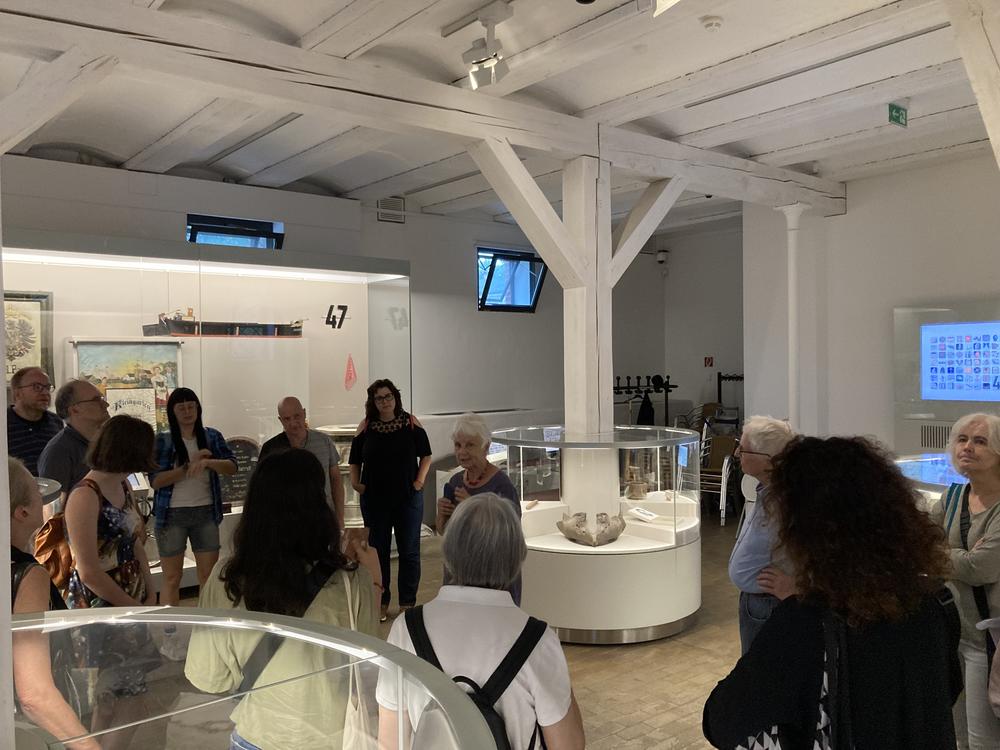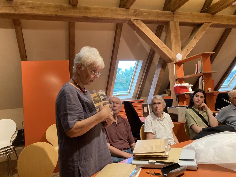 A fascinating journey into the history of the Berlin district Neukölln - on July 12th, 2024, we visited our alumna Christa Jancik for a look behind the scenes at the Neukölln Archive and Museum. Idyllically situated on the Britz estate, the Neukölln Museum is the second oldest district museum in Berlin. It collects everything that has to do with Neukölln past and present. The history repository comprises a museum collection of things that tell special stories. For example, we were able to see a never-before-exhibited doll from 1902, which was made in Neukölln and was owned by a Neukölln family for generations. Postcards with views of the former Neukölln, old letters, tickets and collections of documents from the estates of interesting Neukölln personalities are a real treasure trove for history fans and are just waiting to be discovered.