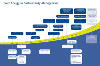 The Unit for Sustainability and Energy Management initiates and coordinates activities related to sustainability in research, teaching, transfer, and on campus. This includes managing centralized and decentralized teams, establishing sustainability-related teaching offers, continuing to develop the integrated management system, coordinating the EMAS certification process, regular sustainability reports, university-wide energy monitoring, and waste management. The Unit advises the university leadership, creates opportunities for participation for all members of the university, coordinates the DAAD-funded University Alliance for Sustainability (UAS) and participates in regional and international sustainability networks. One of the concrete instruments for implementing the climate emergency declaration is the idea and innovation management. All students and employees can participate with creative ideas and their experiential knowledge.