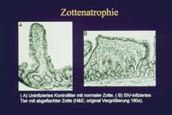 Abbildung 3: Struktur von Dünndarmzotten vor und nach Infektion mit Immun-defizienzviren (SIV). |