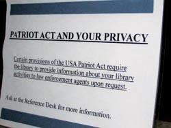 Bürgerrechtsgruppen beklagen unterdessen immer häufiger einen schwindenden Respekt für den Schutz der Privatsphäre und des persönlichen Datenschutzes. Konkrete Beispiele, wie das neue Gesetzespaket verfassungsmäßig zugesicherte Rechte aufweicht, sind zahlreich. So rief die durch Artikel 215 des Patriotic Acts legitimierte Prozedur des FBI, individuelle Bibliotheksnutzungskonten und somit die Lesegewohnheiten von Verdächtigen zu überwachen, deutliche Kritik und erheblichen Widerstand hervor. Da das FBI unter genanntem Artikel das Recht hat, bei einer laufenden Untersuchung nicht nur die Geschäftsdaten von Verdächtigen zu überprüfen, sondern ebenso die Liste der von ihnen entliehenen Bücher, befürchten viele Bibliothekare eine entscheidende Verletzung der Privatsphäre ihrer Besucher. Zusätzlich stellt es der Artikel unter Strafe, den betroffenen Entleiher darauf hinzuweisen, dass das FBI seine Daten durchforstet, da dies einer Beeinträchtigung der laufenden Untersuchung entsprechen würde. Andererseits kommt es einer Einschränkung der allgemein zugesicherten Redefreiheit der Bibliotheksmitarbeiter gleich. Im Fe-bruar 2003 hat die American Library Association daraufhin eine Resolution erlassen, die den Auftrag der Regierung, seine Bürger zu schützen, zwar anerkennt, indes aber ihren Protest und Widerstand gegen Praktiken ankündigt, die sie als Gefahr für die Eckpfeiler der Demokratie sieht: Das Recht des Bürgers, unbedrängt zu lesen, anzuschauen und auszudrücken, was der Bürger möchte. Die Befürchtung liegt darin, dass sich so mancher Entleiher zwei Mal überlegt, auf welchen Webseiten er surft und welche Bücher er entleiht. Viele Bibliotheken im Verband sind dazu übergegangen, aus Protest große Schilder in ihren Lesesälen und an der Ausleihe auszuhängen, die über die betreffende Sektion des Patriot Acts informieren.