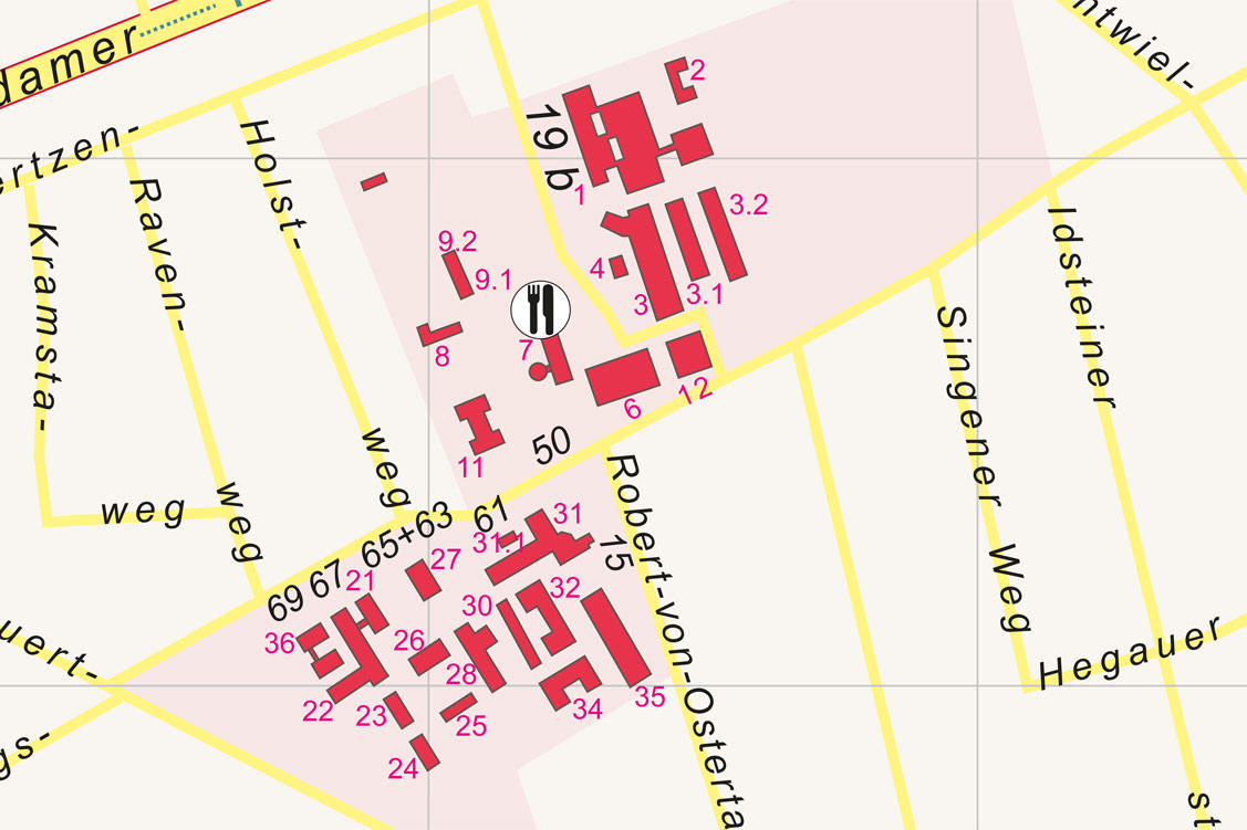 Der gesamte Lageplan des Campus Düppel inklusive Legende steht als PDF-Dokument zur Verfügung.