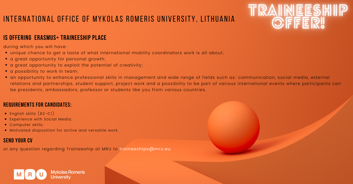- Arbeit im International Office der Mykolas Romeris University: Kommunikation, Social Media, Studierendenbetreuung, Projektarbeit