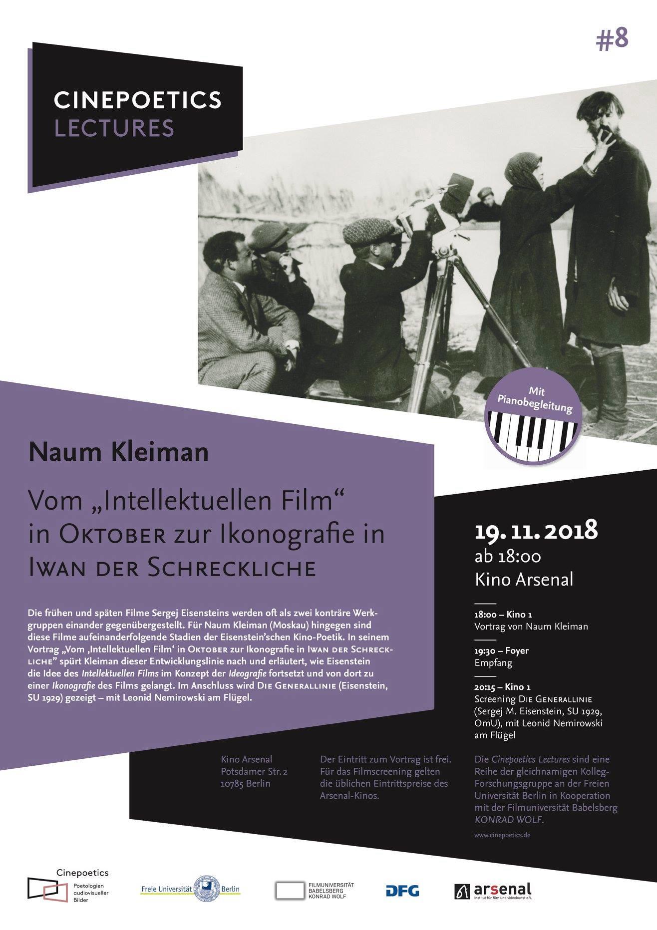 - 19. November 2018, Vortrag: Vom "Intellektuellen Film" in OKTOBER zur Ikonografie in IWAN DER SCHRECKLICHE, Kolleg-Forschergruppe Cinepoetics