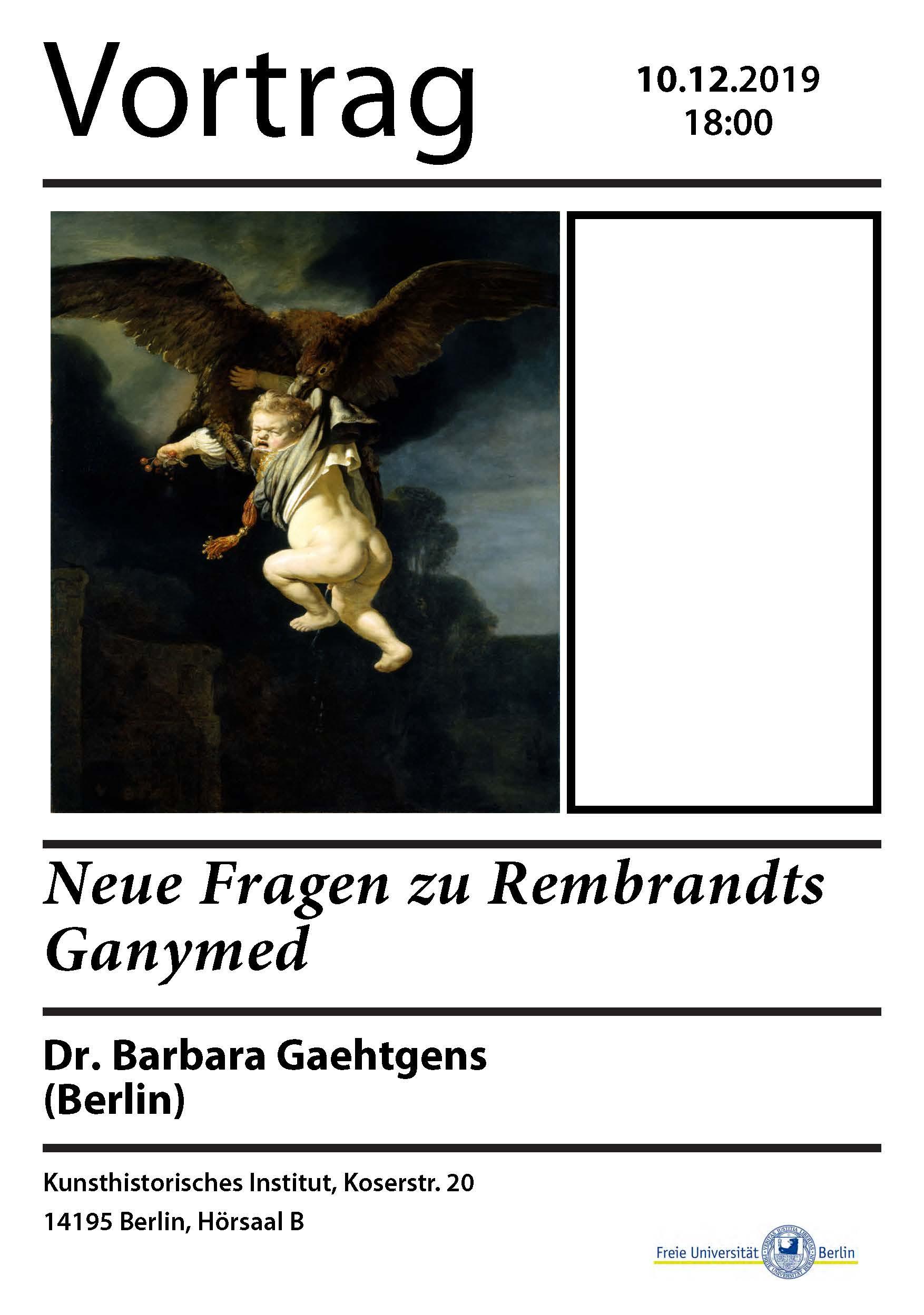 - 10. Dezember 2019, Vortrag: Dr. Barbara Gaehtgens – Neue Fragen zu Rembrandts Ganymed, Kunsthistorisches Institut