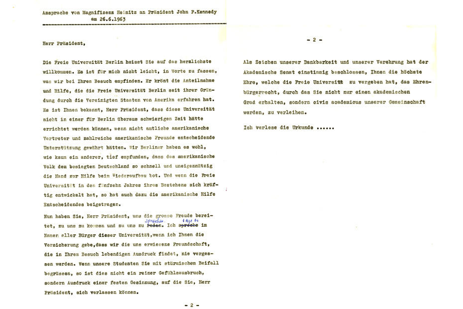 Von der Eintrittskarte über Anfahrtswegen bis zur Sitzplatzverteilung: Dokumente "erzählen" vom Besuch John F. Kennedys.