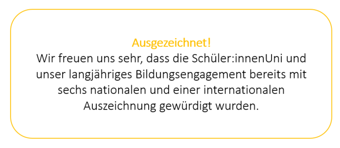 BNE im Unterricht heißt, Kinder zu ermutigen und zu befähigen, die Komplexität unserer Welt besser zu verstehen und Handlungsalternativen für eine bessere Zukunft im Sinne einer nachhaltigen Entwicklung zu gestalten. Mit der Schüler:innenUni machen wir erfahrbar, dass wir die Krisen unserer Zeit mit Wissen, Fantasie, Kreativität und Teamgeist bewältigen können.