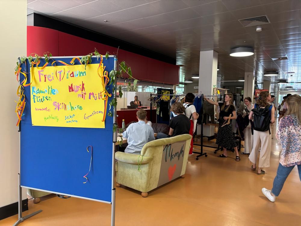 Lernen muss nicht nur im Hörsaal stattfinden! Oft scheint es einfacher, Dinge neu zu kaufen, anstatt sie selbst zu machen oder zu reparieren. Aber wie und wo geht das und was hält uns eigentlich davon ab? Im "Frei(T)raum" möchten wir euch mit einem Skillshare-Angebot dazu anregen, eure coolen Fähigkeiten mit anderen Studierenden zu teilen oder von anderen Studierenden und eingeladenen Referent*innen neue Skills zu lernen. Uns ist wichtig, dass Lernen bei uns ohne Hierarchien auf Augenhöhe stattfindet, sodass ihr in einem Moment etwas lernt und im nächsten euer Wissen weitergeben könnt. Gemeinsam wollen wir eine lebendige, unterstützende Gemeinschaft schaffen, in der jeder Beitrag zählt und nachhaltiges Handeln im Mittelpunkt steht. Ob Kleidung reparieren, gemeinsam Pflanzen vermehren oder zusammen musizieren – viele Dinge sind oft gar nicht so schwierig, wie sie zunächst erscheinen. Und das Wo? Wir wollen zeigen was aus den leerstehenden Räumen der Universität alles entstehen könnte, denn oft braucht es nur einen ersten Anstoß, und genau diesen möchten wir mit dem "Frei(T)raum" geben.