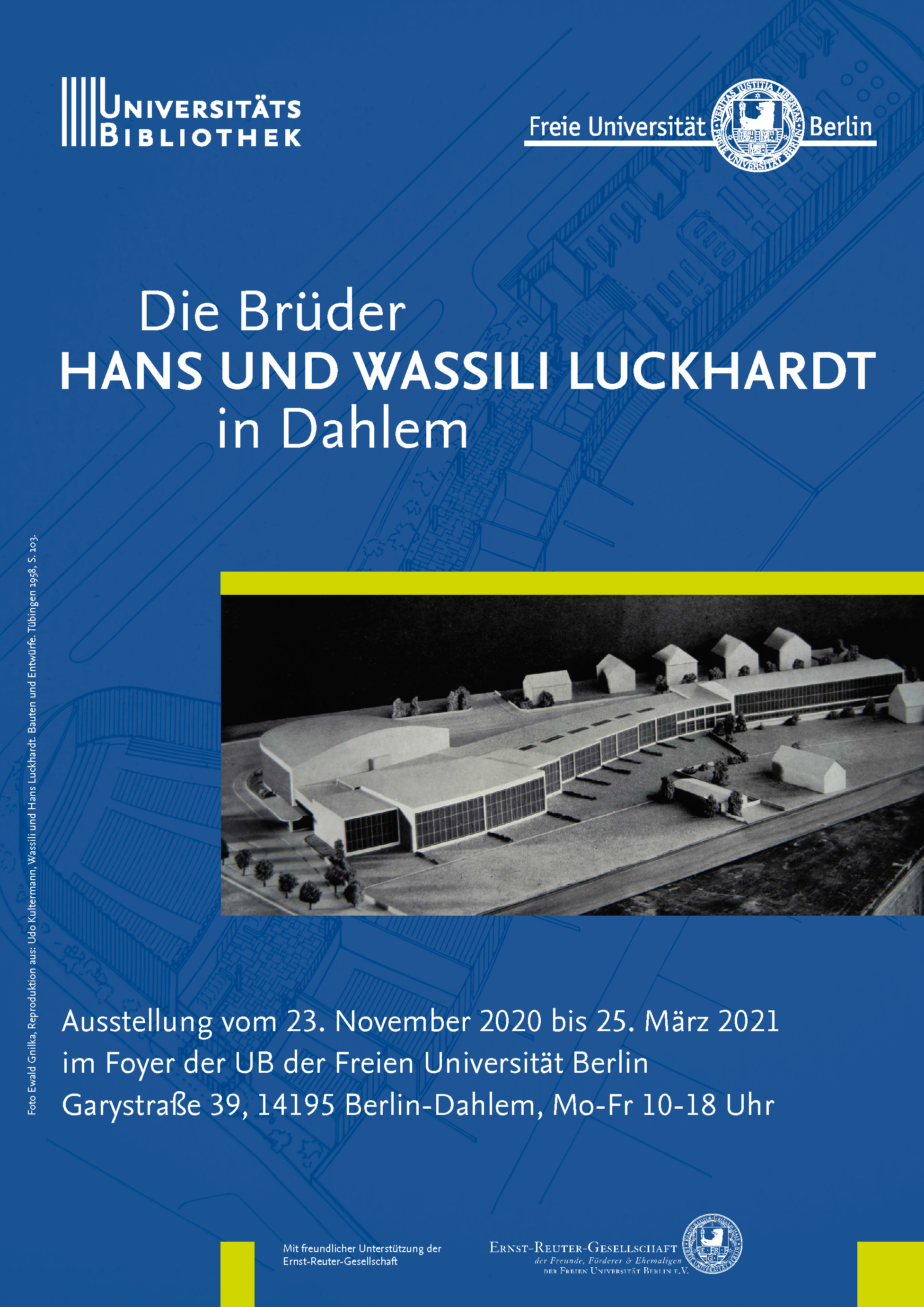 Die Entwicklung und innovativen Bauweisen der Architekten Luckhardt wurden von der Kunsthistorikerin, Frau Priv-Doz. Dr. Gisela Moeller (FU/Kunsthistorisches Institut) anhand der Wohnhäuser und der Institutsbauten in Dahlem aufgezeigt. Zeitgenössische Aufnahmen der Gebäude wurden aktuellen Fotografien gegenübergestellt. Ergänzend war Literatur über die Architektenbrüder zu sehen.